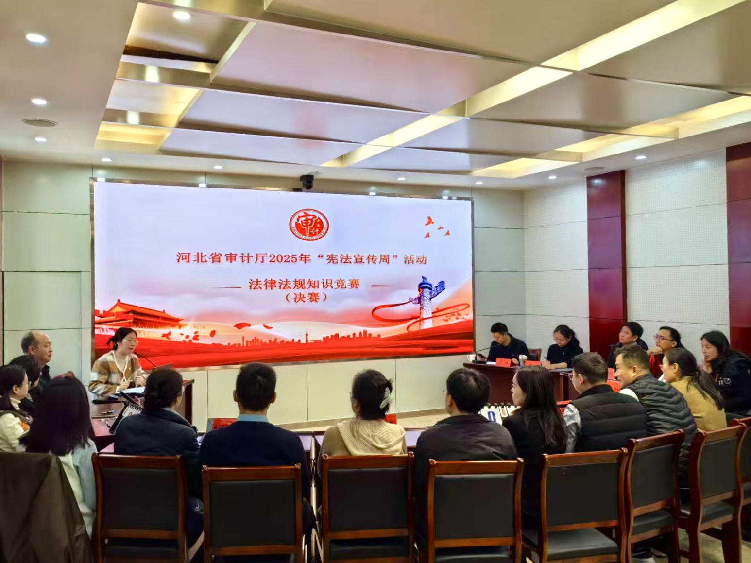 本次竞赛以“学法规、强技能、提质效”为主题,内容涵盖审计法、审计法实施条例、国家审计准则等核心法律法规和我厅审计项目全流程审计质量控制办法、审计现场管理办法等业务制度,还包括了财政财务审计、经济责任审计等重点业务知识。竞赛得到了厅内30个业务部门的积极响应,经过初赛选拔,共有6个部门、18名选手脱颖而出,进入最终决赛。